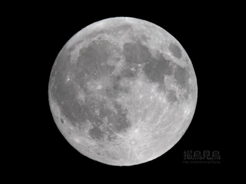 伊豆諸島沖には唐突に発生した台風11号が東進中。関東北部で雷雲が暴れまくっている最中、月が見えるだけでもありがたい気象状況。歪な輪郭に一目瞭然のユラユラ大気です。 厳密には明朝6:16ですが、見た目には満月と言っても差し支えなさそうです。