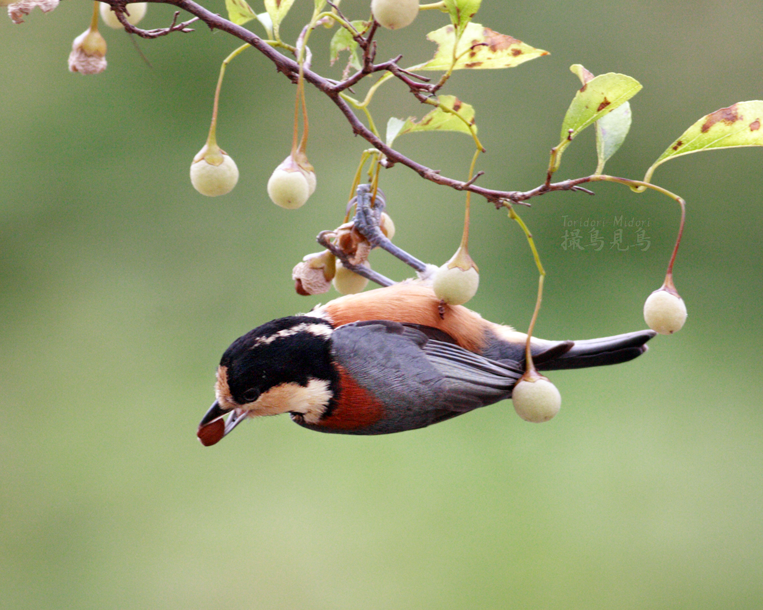 9月、エゴノキが実を付けるとヤマガラの狂乱が始まる。警戒心をかなぐり捨てて夢中で貪る姿を見るにつけ、ネコとマタタビの関係を想起する。エゴノキの果皮や果実には有毒なエゴサポニン*1が含まれるそうだけど、それがヤマガラにマタタビのような作用をもたらすのだろうかと。